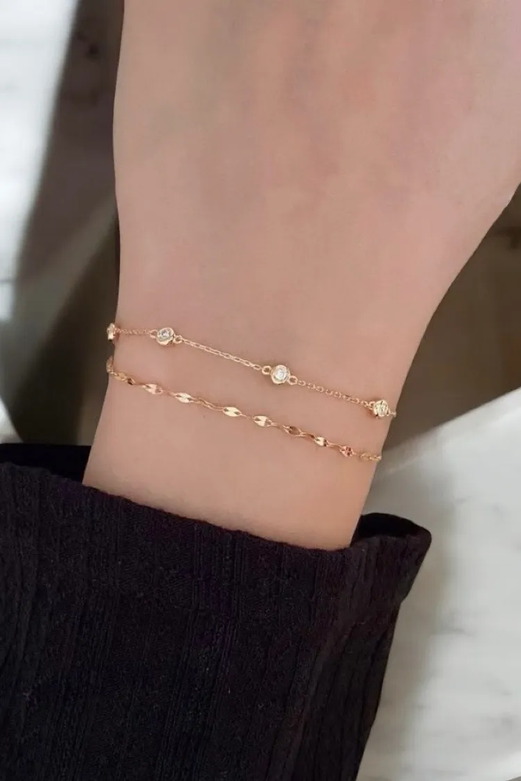 Mirrowave Bracelet|鏡波雙鍊手鍊 (圓鑽+扭紋雙鏈設計)